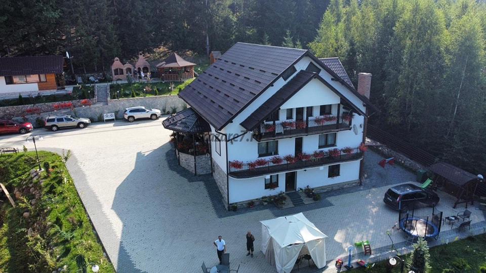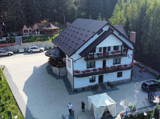 Dispune de 5 camere duble cu bai proprii,bucatarie proprie,spatiu de luat masa,foisor,gratar,ciubar cu apa sarata, sauna,spatiu de joaca pentru copiii,camerele sunt dotate cu internet,televizor si frigider,fier calcat,uscator par,produse cosmetice baie,halat.